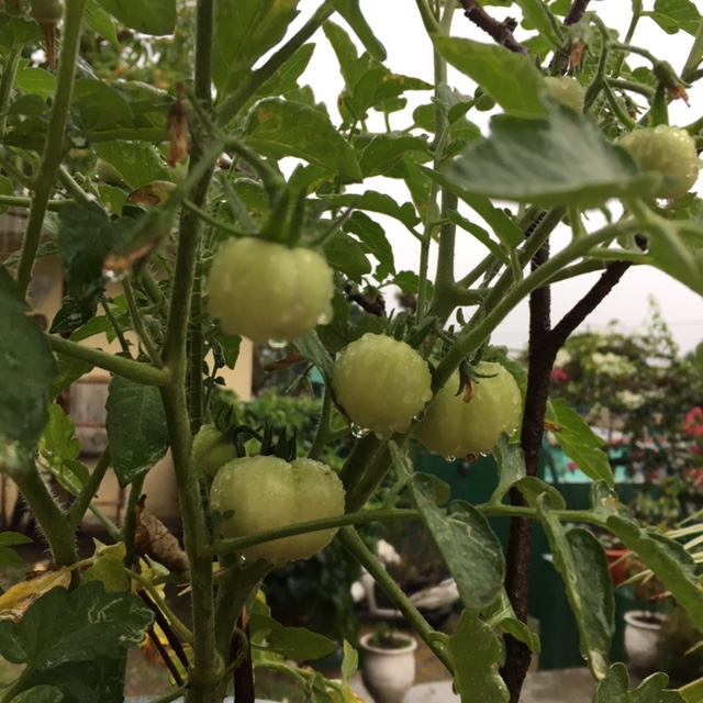 Der Regen tat unserem Garten nach Wochen der Dürre und Waldbrände sehr gut. Fotos von heute morgen: Die Pfefferminze ist erntebereit. Tomaten, Gurken und Chili Bäumchen sind im Werden.