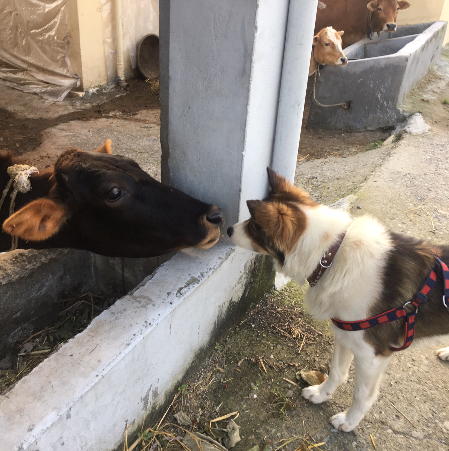 Weniger beunruhigend sind da des Nachbarn Kühe und Hühner. Meine beiden Hunde begrüßen die Kühe beim morgendlichen Gassigehen mit Freude, Respekt und manchmal auch Küsschen, während die freilaufenden Hühnern besser wegrennen, um nicht zum Jagdobjekt zu werden. Ich möchte es mir vor allem nicht mit den Legehennen verscherzen. Ihre Eier sind köstlich und gelegentlich bekommen wir ein Dutzend für die ganze Familie. Milch gibt es ebenso frisch vom Bauern.