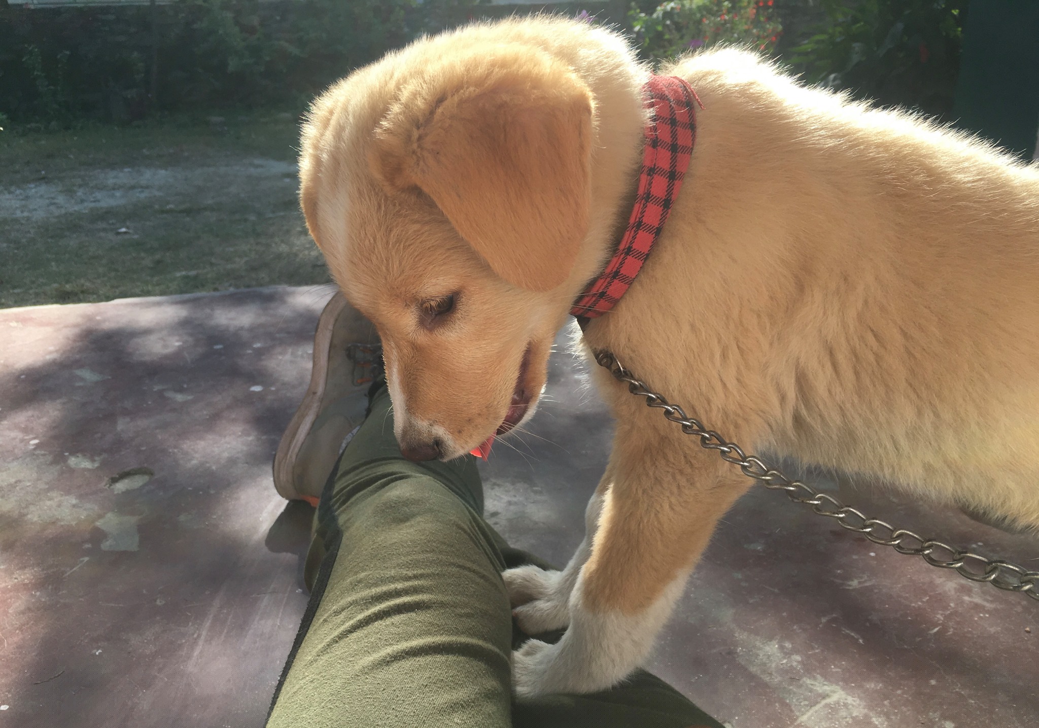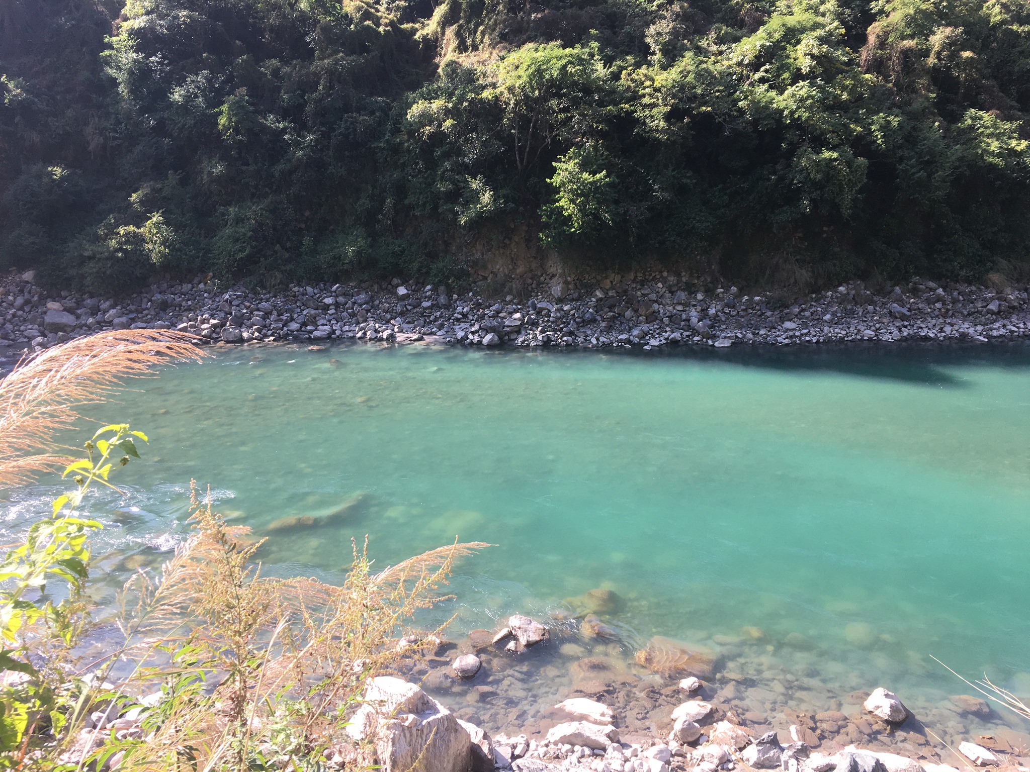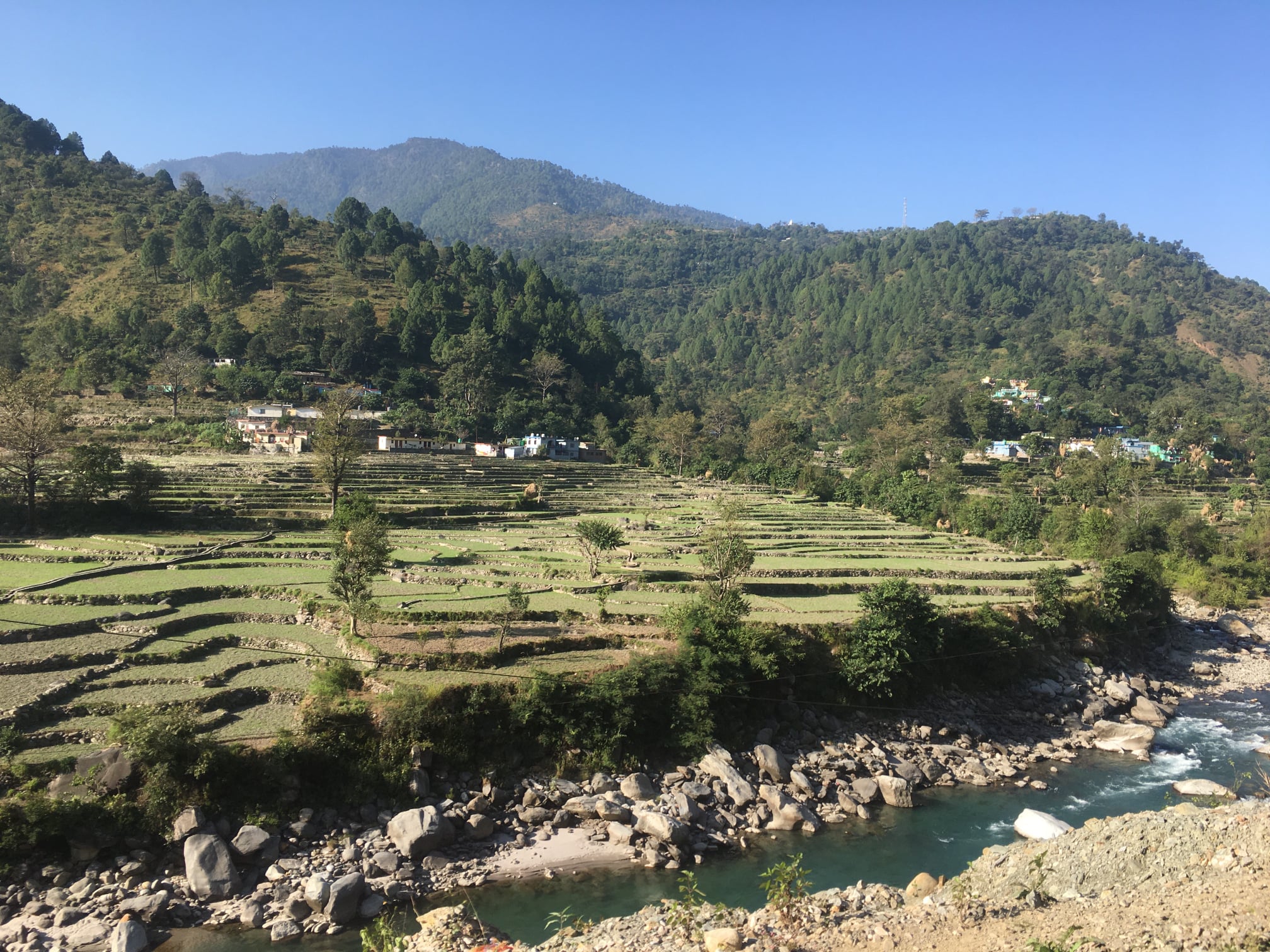Der smaragdfarbene Mandakini-Fluss (Nebenfluss des Ganges), ein knuddeliger Welpe und ich: