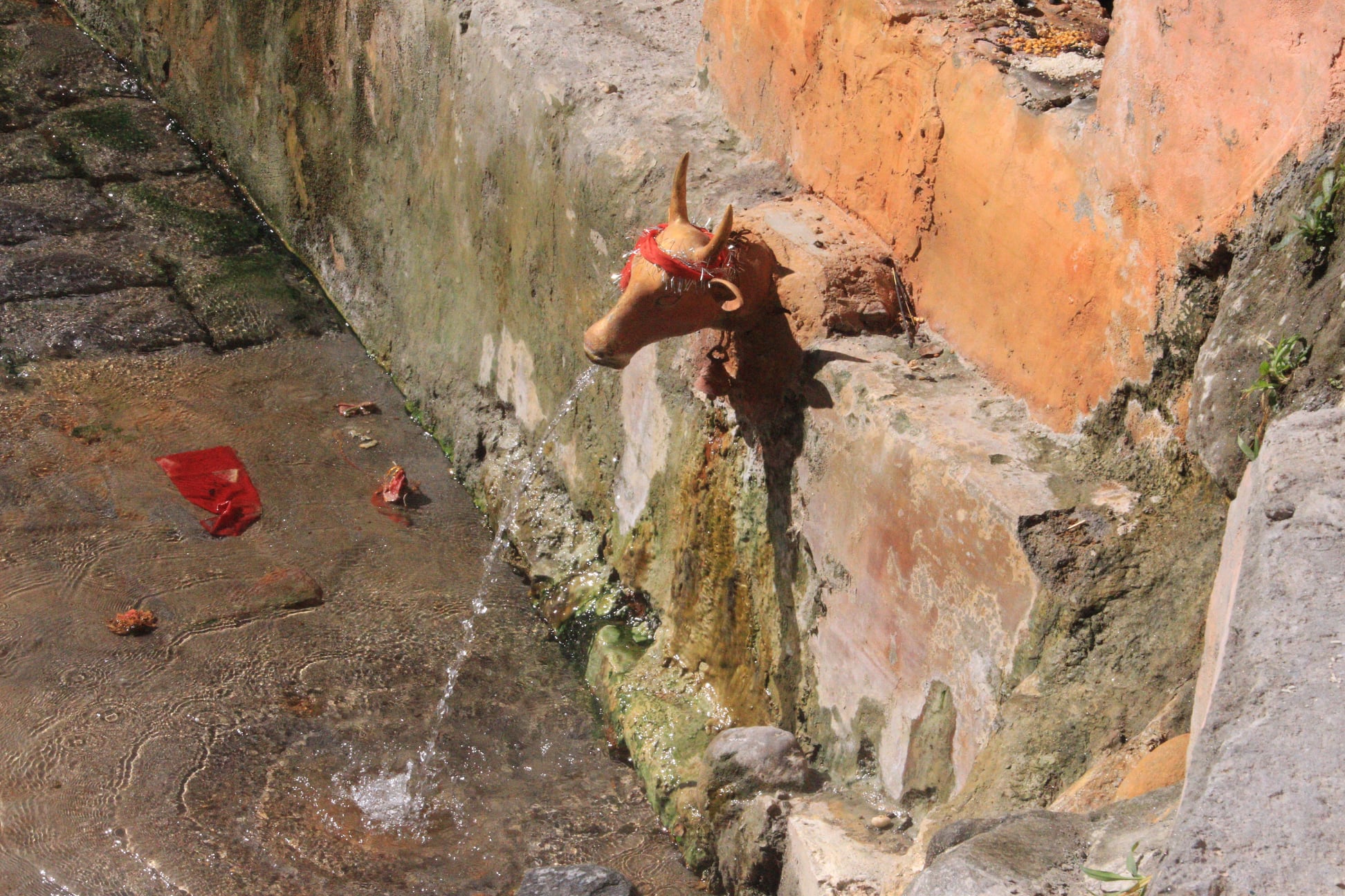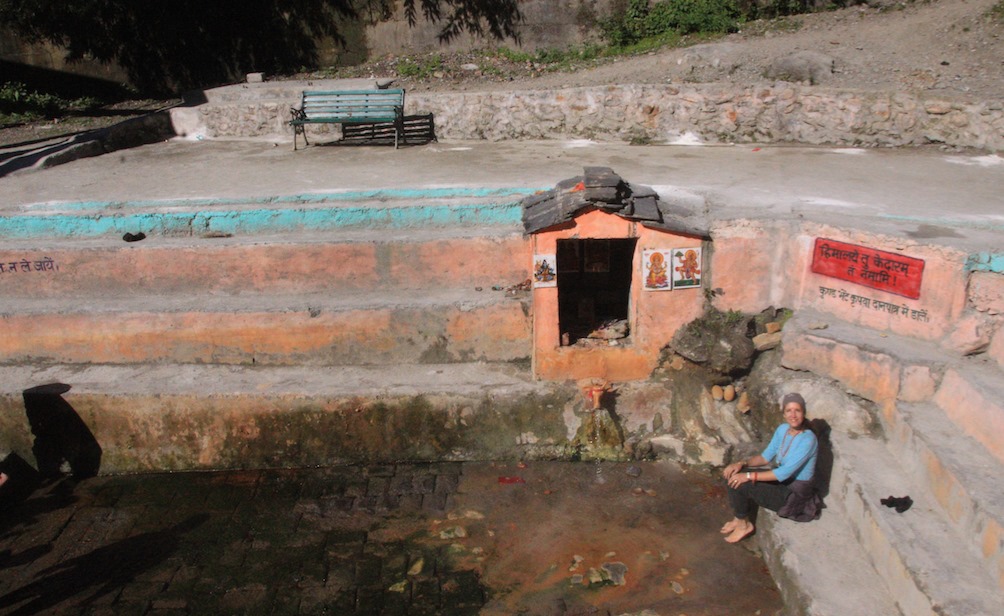 Ich nahm ein Fussbad in der (super)heißen Naturquelle bei Gaurikund am Ufer des Mandakini, dem Basislager und Trekking-Startpunkt für den weiter hoch gelegenen Kedarnath-Tempel. Dieser war allerdings bereits schon geschlossen und in Winterpause. Laut antiker Überlieferungen ist dies der Ort, an dem Göttin Parvati badete, als ihr Sohn Ganesha die Tür bewachte und seinem Vater Shiva den Zutritt verwehrte, was allerhand Folgen hatte…
