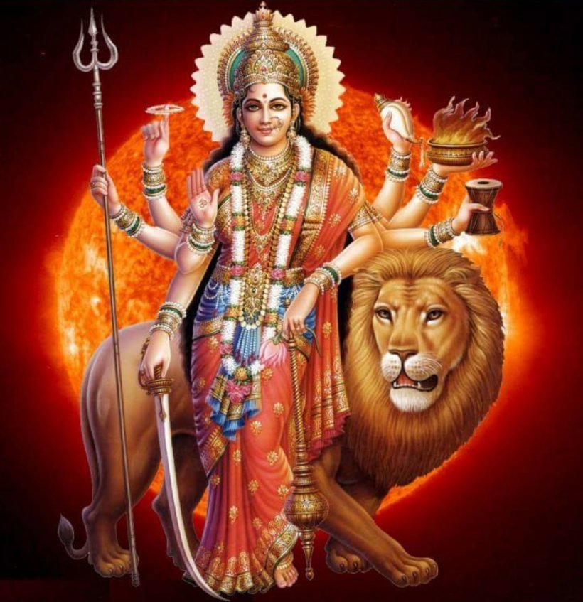 Die Anrufung von Durga, die auf einem Löwen reitet und das Sonnen-Shakti hält, bietet Schutz, denn Durga zerstört alle negativen Kräfte und beseitigt jegliche Täuschungen…